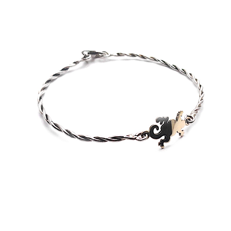 il bracciale rigido a cordella lo rende particolare e crea un contrasto con il geco lucido