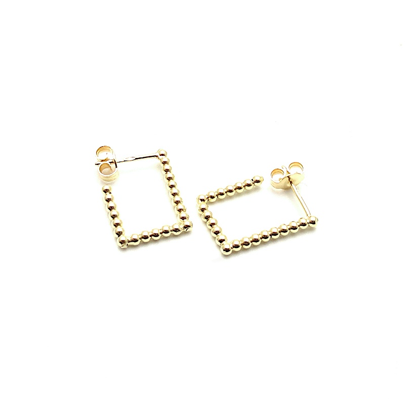 orecchini di forma rettangolare formati da pallini in oro 18 carati