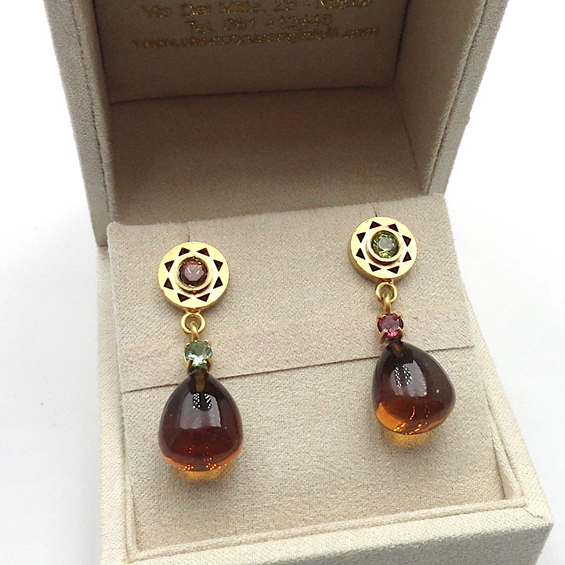 il colore di queste gocce di topazio naturale rende unico questo gioiello