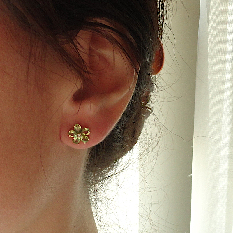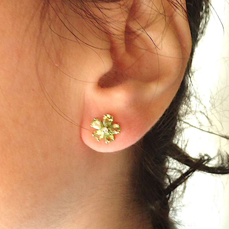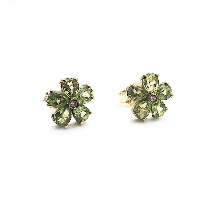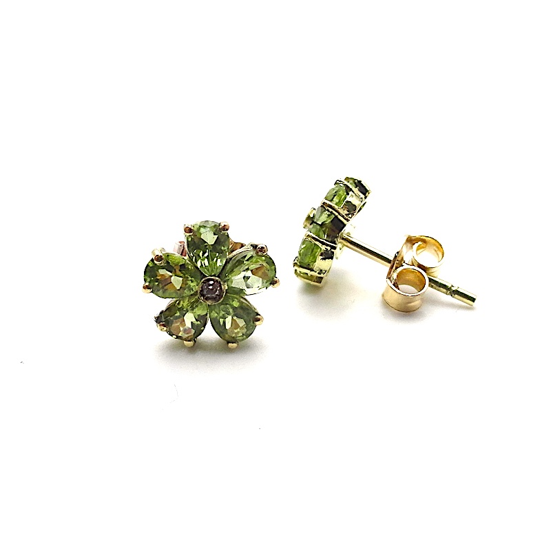 orecchini a forma di fiorellino con bellissimi peridoti