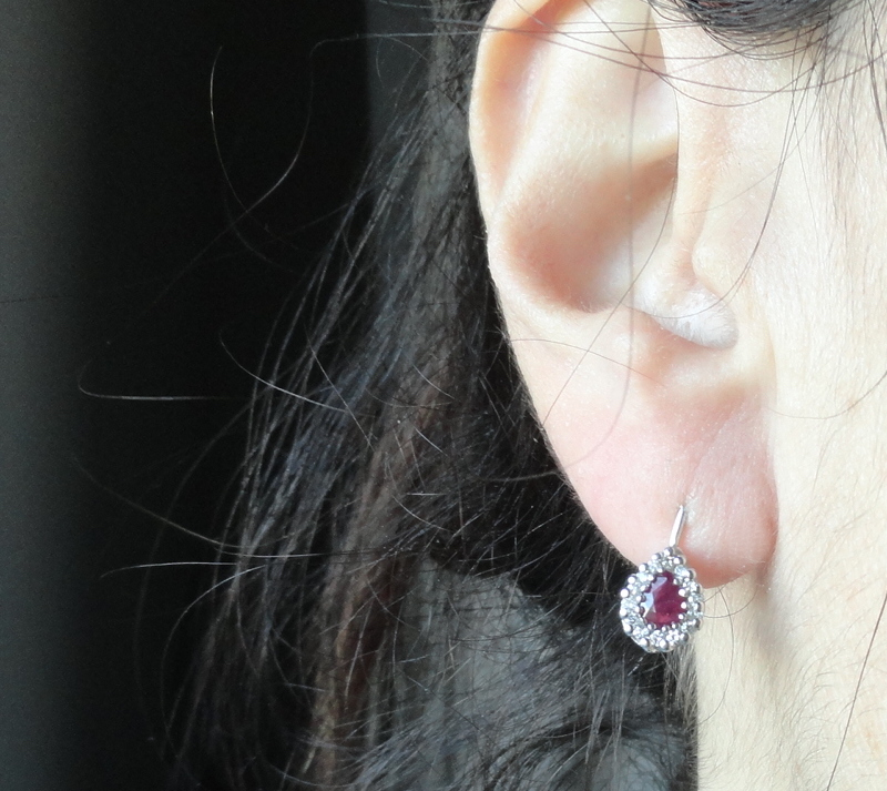 orecchini oro bianco con rubini e brillanti